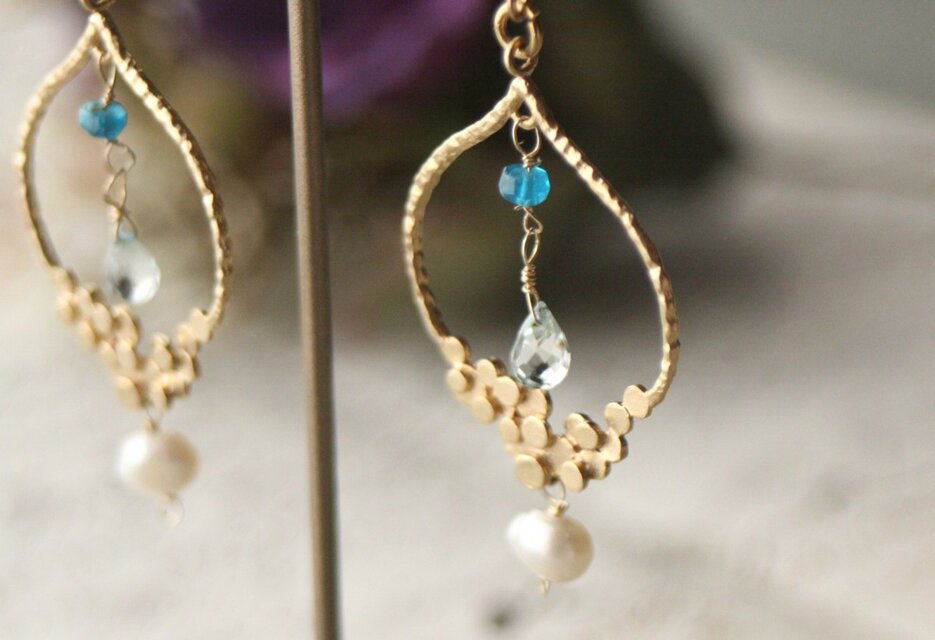 合わせた天然石はアクアマリンとブルーアパタイト。