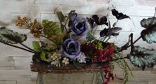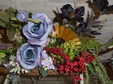 すみれいろのバラ ブラックのクリスマスローズ 赤い南天の実 野草花の雰囲気とゴージャスな雰囲気を併せ持ったアレンジメントです。