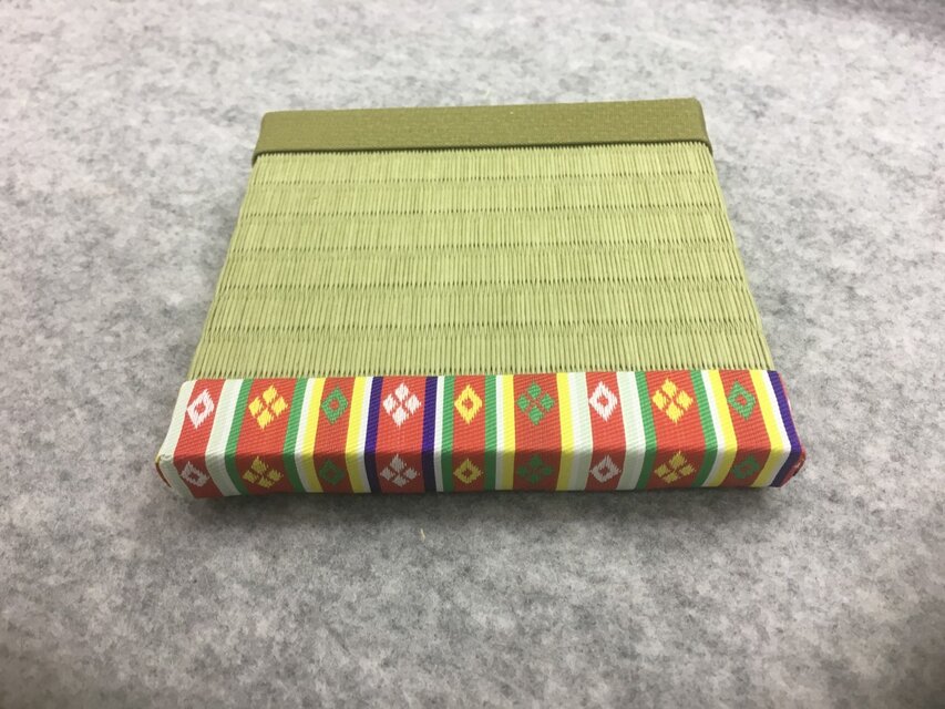 和紙で出来た畳表に、前面のみ神社などで使用する、格式高い繧繝縁を使用したミニ畳です。