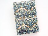 リバティの人気生地、ストロベリーシーフ Strawberry Thief(緑)とハーフリネンの生地でビジネス書サイズのブックカバーを作りました。