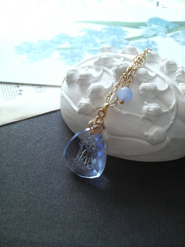 赤ん坊に姿を変えたキリストを抱き川を渡ったという逸話があり、そのシーンを表すインタリオグラスペンダントです。