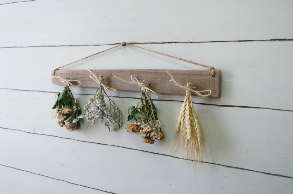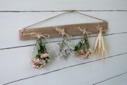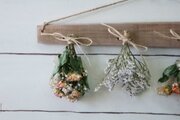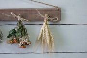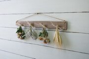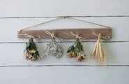 自家製ドライフラワーを古材風に加工した板にセットしました。