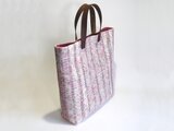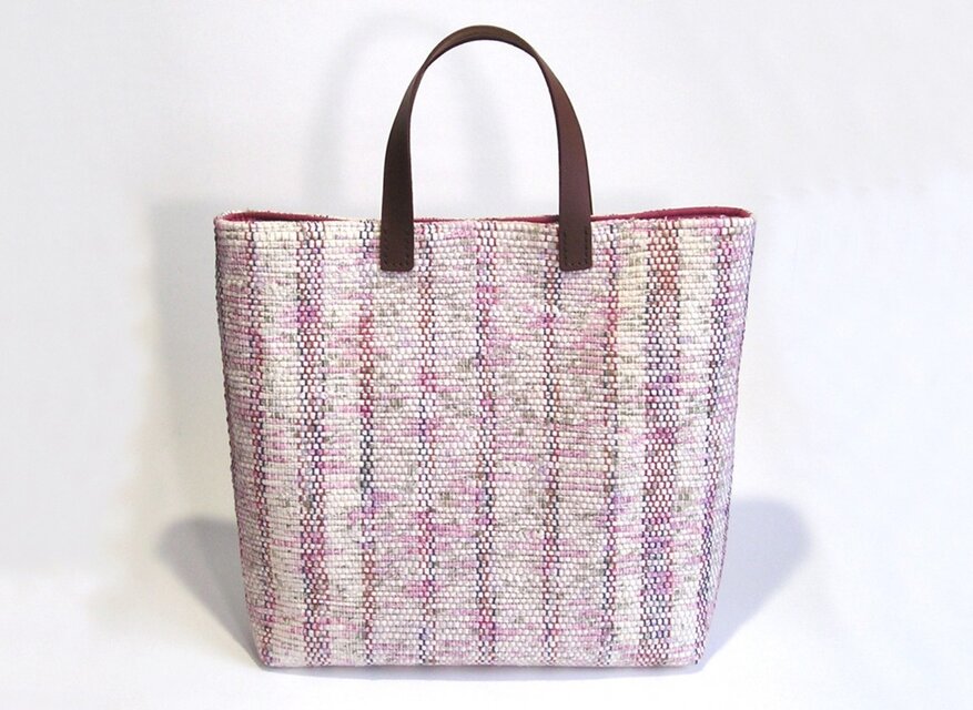 裂織りの布地を使い、ほころびはじめの儚げな桜の花をイメージした、トートバッグを作りました。(母が裂き織りを、娘がバッグの仕立てを担当してのコラボ作品です!)