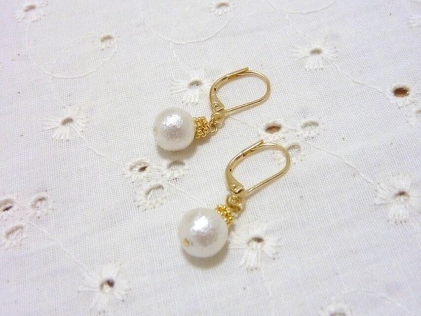 かるいつけ心地のコットンパールを一粒ピアスに仕上げました。