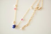 天然石:ラピスラズリ(タテ7㎜)、淡水パール、レッドスピネル