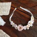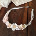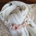 淡いピンクやアイボリー、オフホワイトに染色し制作したデージーやすみれなどの春のお花をネックレスに仕上げました。