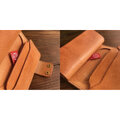 表面の艶の美しさと鮮やかながらも落ち着いた色合いが特徴的なトスカーナ産の高級イタリアンレザー を使用しています。芯まで色が入っており使い込むほどに味のある色へと経年変化していきます。