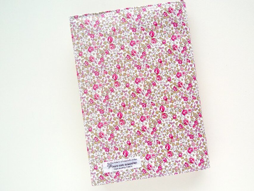 リバティの人気生地、Eloise エロイーズ(ピンク)とハーフリネンの生地でビジネス書サイズのブックカバーを作りました。