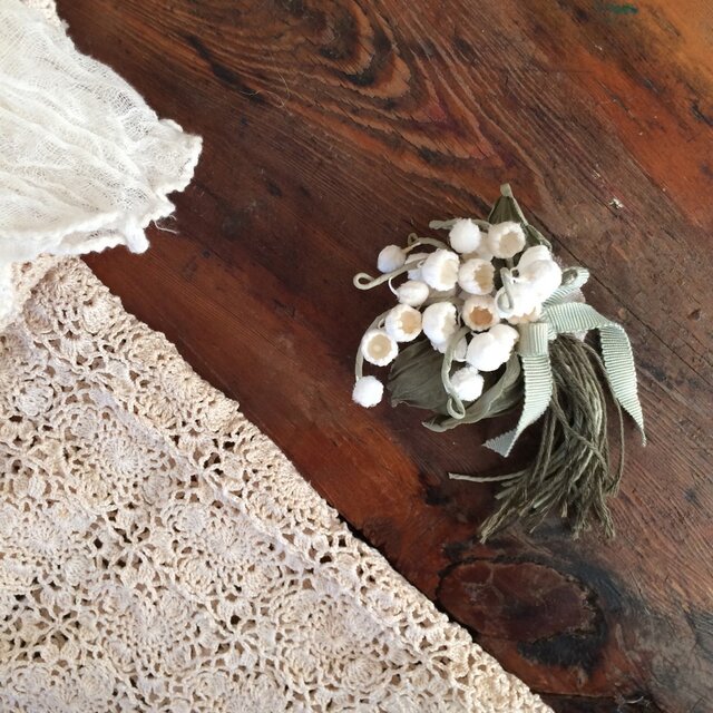 すずらんの花束をクリップ付きのコサージュに仕立てました。