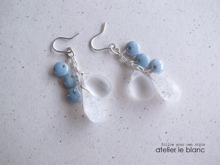 陶器を思わせる淡いブルーグレーのチェコビーズを添えました。