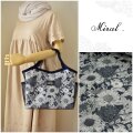 サイド、ポケット、底にはオックスラミネートのネイビー色を使って制作しました。