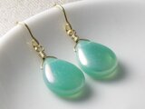チェコフラットドロップのピアス ラスターターコイズ