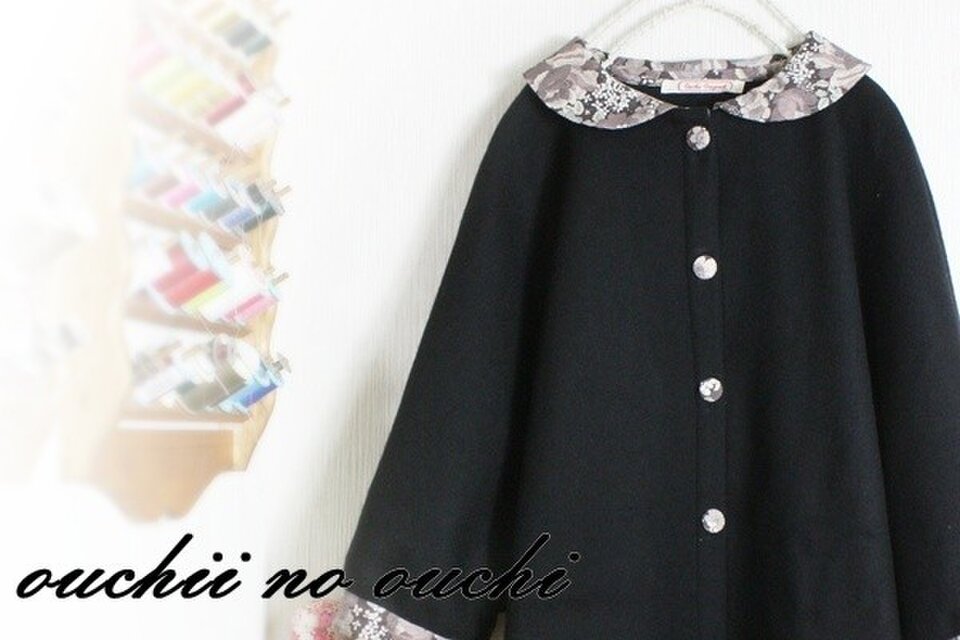 ブラック厚地の圧縮生地ウールと昨年Amelie's Rose&Gardenアメリーズ・ローズ&ガーデン ブラウン系のフラットのヘチマカラーのドルマンジャケットをお作りしました。