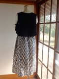黒地に白、ピンク、赤の模様の銘仙からのリメイクです。