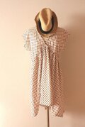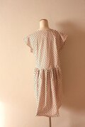 ギャザーが入るデザインですが、ストン、と下に落ちるライン、前後ろの長さが違う、見た目もかわいらしくなおかつ動くときに大人のドレープ感を感じて頂ける、大人かわいいワンピースです。