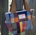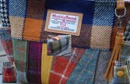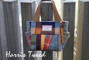 サイドポケットバッグS(ハリスツイード:カラフルパッチ×サイドにくるみボタン)