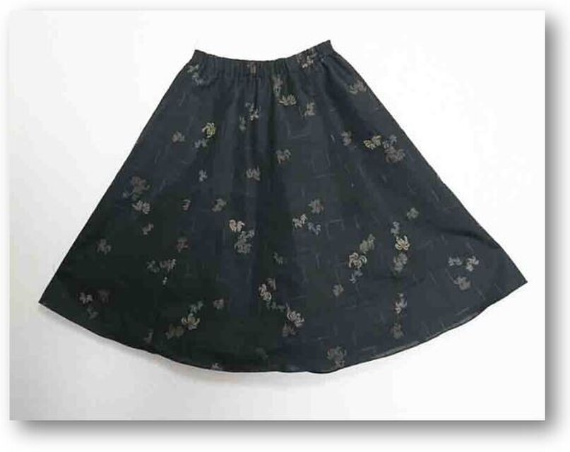 124 SALE 菊柄着物ギャザーフレアスカート