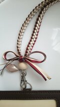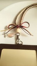 サテンリボンで作ったストラップです。取り外し可能なのでお手持ちの物にもお付けする事ができます。