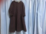 リネン◆クラシカルワンピ 七分袖◆グレープ◆S・M・L・LL(中厚リネン100%、ワンピース)