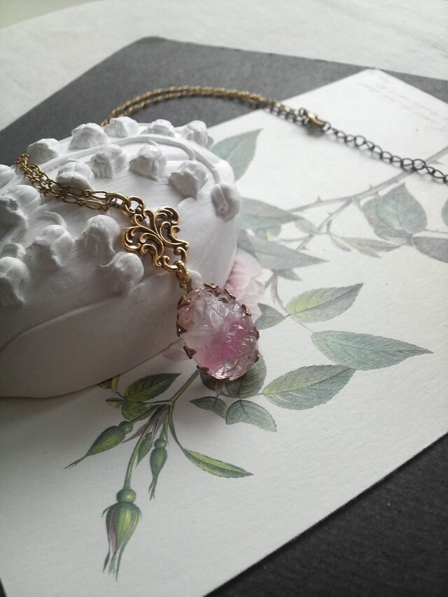 ヴィンテージ Sugar-White・PinkRoseギヴレ ネックレス
