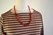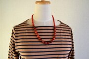 組み合わせたレッドカラーのミドルロングのネックレスです。