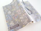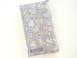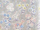 生地の色は地の色が、少し濃淡のあるライトグレー、花の色にブルー、イエロー、ライトピンク、ホワイトなど、動物の色にライトピンク、ブルーなどが使われています。