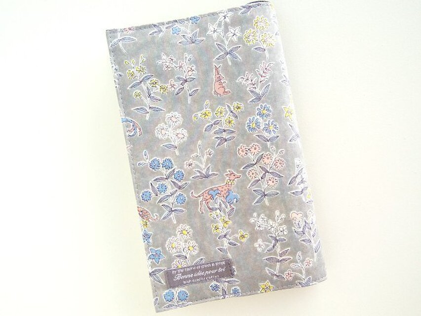 リバティの人気生地、 ミルフルール Mille Fleurs(ライトグレー)とハーフリネンの生地で新書本サイズのブックカバーを作りました。