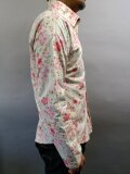 変り織の綿生地に華やかに桜が描かれた粋なシャツ