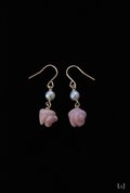 ピンクオパールを丁寧に薔薇のかたちにハンドカット、あこやパールと合わせたスイートなピアス rosé(ロゼ)。