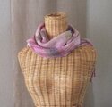 ピンク系ですが、どの糸も自然素材で染め、落ち着いた色合いなので、肌なじみがよく、合わせやすいと思います。