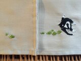 猫とふきのとうを手刺しゅうした大判サイズのハンカチです。