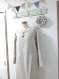 ナチュラル色 起毛リネン100%生地でラップワンピースを作りました。