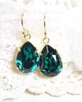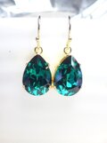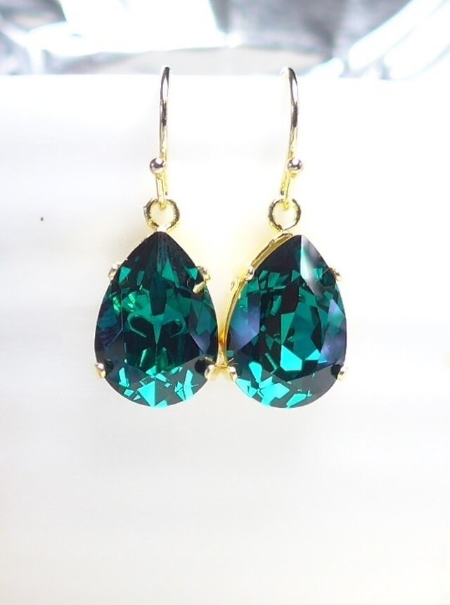 宝石のようなエメラルドののスワロフスキー(14×10mm)を石座にセットして、大人のちょっぴりゴージャスなピアス