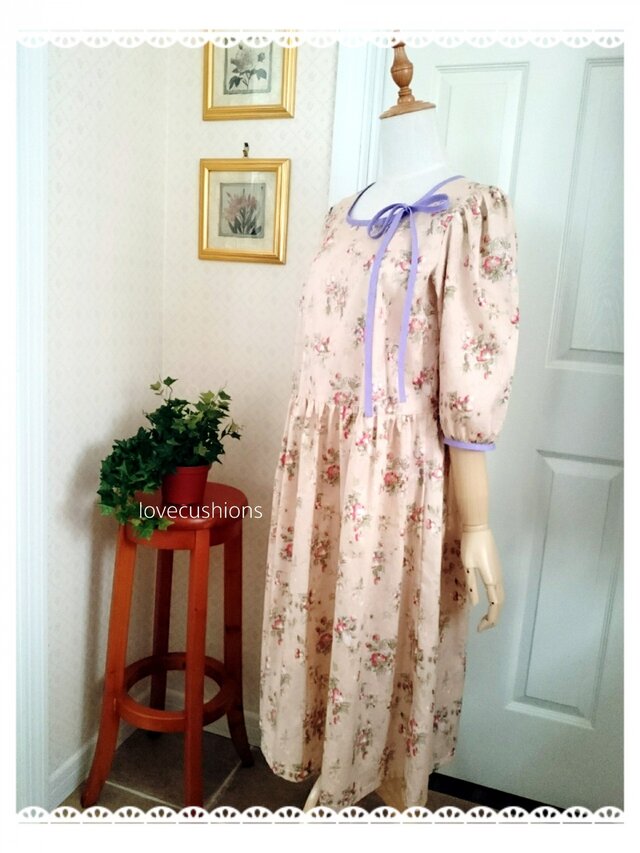 ♥薄地のジャガード織りの生地で優しい雰囲気のワンピースを作りました♪