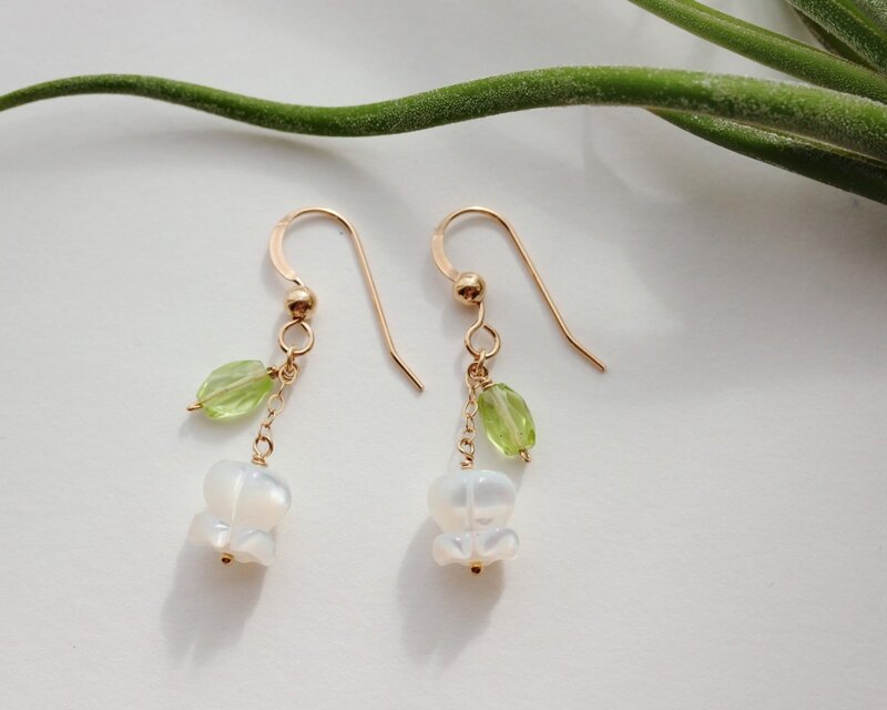 可憐で可愛らしい白蝶貝のスズランを使いやすいシンプルなピアスにしました。