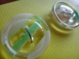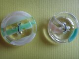 透明ポリエステルの淡い色のパーツを閉じ込めたボタンです。