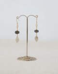 小さいけれどくっきりとした光沢を持つあこやパール、カットとシラーが美しいラブラドライト、ほのかなグレイ&ホワイトのマチエールを持つアゲートのピアス、Donna-p(ドナ ピアス)。