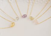 石をそのままチェーンに通しており、シンプルながらジュエリー感があるネックレスに仕上がりました。