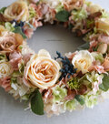 ブラウン、ベージュ、アイボリーのバラたちを環にのせて。