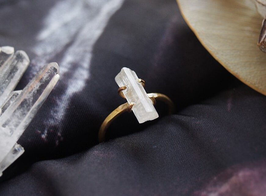 柱状に育つ結晶の形をそのまま活かした、ホワイトルマリン原石のリング。
