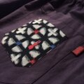 左右の裾とポケットに、銘仙を華やかにあしらった