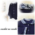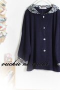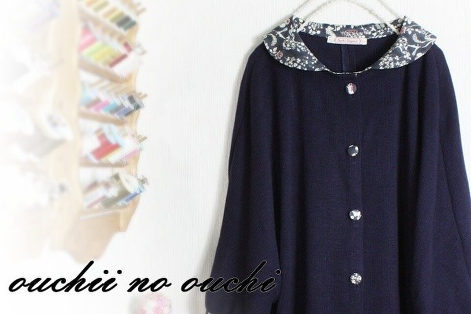 ネイビーリブニット生地と完売人気柄Yosieヨシエ ネイビー系のフラットのヘチマカラーのドルマンジャケットをお作りしました。