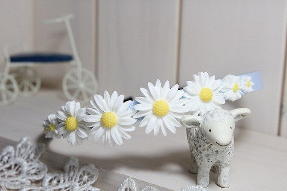 デイジーのカボションを大小あわせて8個つけてとても可愛いパステルカラーのカチューシャが出来ました。