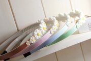 デイジーのカボションを大小あわせて8個つけてとても可愛いパステルカラーのカチューシャが出来ました。