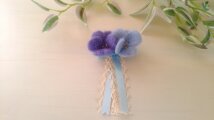 2wayにて、付属のリボンを付けることができます。お花だけ襟元につけてもかわいい、またリボンをたして胸元を飾っても華やかに。服にあわせてお使いいただけます。小さいビオラがぽっと明るい雰囲気に。