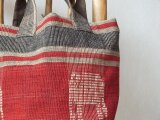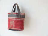 ミャンマーとインドの国境に広がる山岳地帯に暮らすナガ族の手織り厚手木綿から、小ぶりのバケツ形トートバッグを作りました。