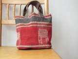 ロバとゾウの織り模様はアシンメトリーに3つ、底のあるトートに仕立てました。