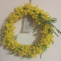 こちらはアートフラワーのミモザをたっぷり使ったリースです。再出品ご依頼のメールを受け、制作させていただきました。