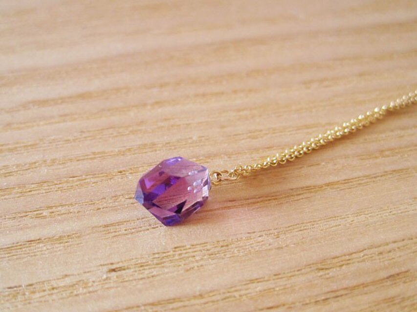 ブラジル産宝石質アメジストの一粒ネックレス。同じ形がふたつとないランダムカットシリーズです。