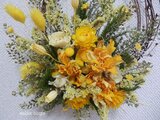 使用材料 水仙、貝細工、染めポアプランツ、プリザーブド・かすみ草、ヤサマーチェリーなど。